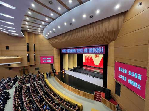 文化宮劇場——可提供千余人專業(yè)會議場地,專業(yè)舞臺、坐席等。主舞臺LED屏幕/側(cè)屏LED/場地附屏LED/會場圍標(biāo)LED/高清現(xiàn)場切換等各種現(xiàn)代化設(shè)施一應(yīng)俱全。