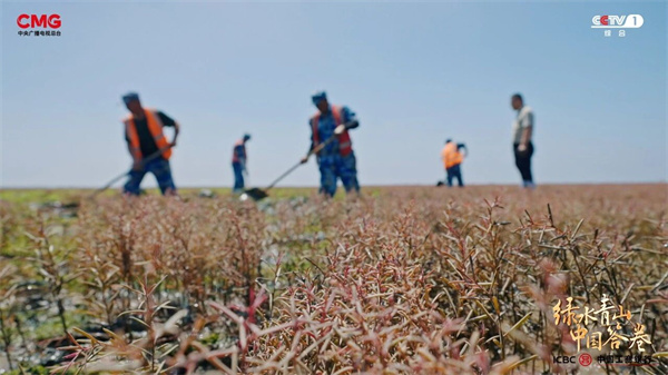 面對“生病”的堿蓬草,工程師帶領(lǐng)工人疏通潮溝,恢復(fù)水體循環(huán),為堿蓬草的健康生長提供科學(xué)保障。