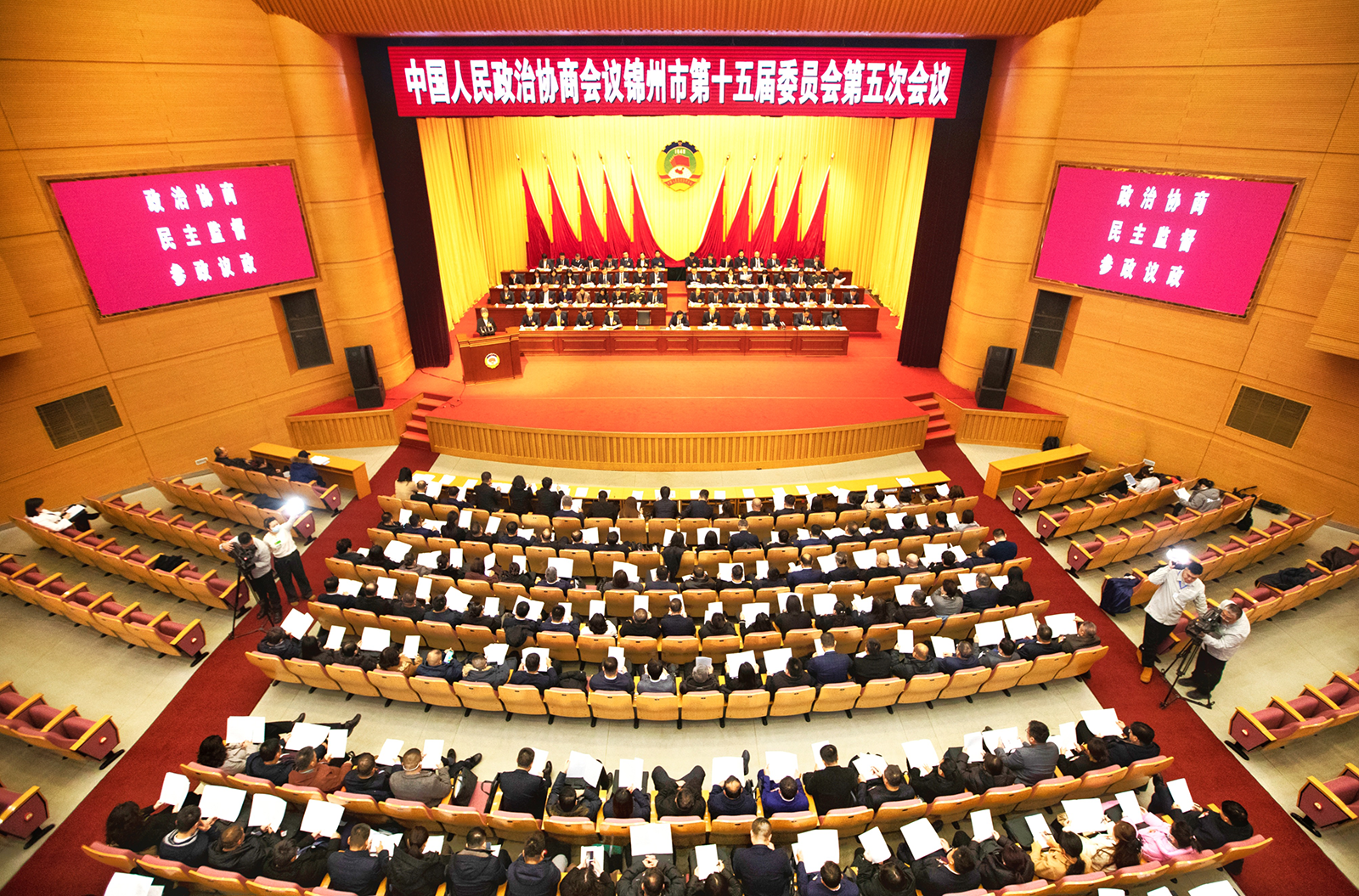 上午8時30分,大會主持人、市政協(xié)副主席徐鑫宣布大會開幕。雄壯的中華人民共和國國歌響徹會場,全體與會人員起立高唱國歌,神情莊重,氣氛熱烈。隨后,大會審議通過了《政協(xié)錦州市第十五屆委員會第五次會議議程》,聽取了市政協(xié)主席于鵬代表政協(xié)錦州市第十五屆委員會常務(wù)委員會所作的工作報告,聽取了市政協(xié)副主席王秀錦代表政協(xié)錦州市第十五屆委員會常務(wù)委員會所作的關(guān)于市政協(xié)十五屆四次會議以來提案工作情況的報告。