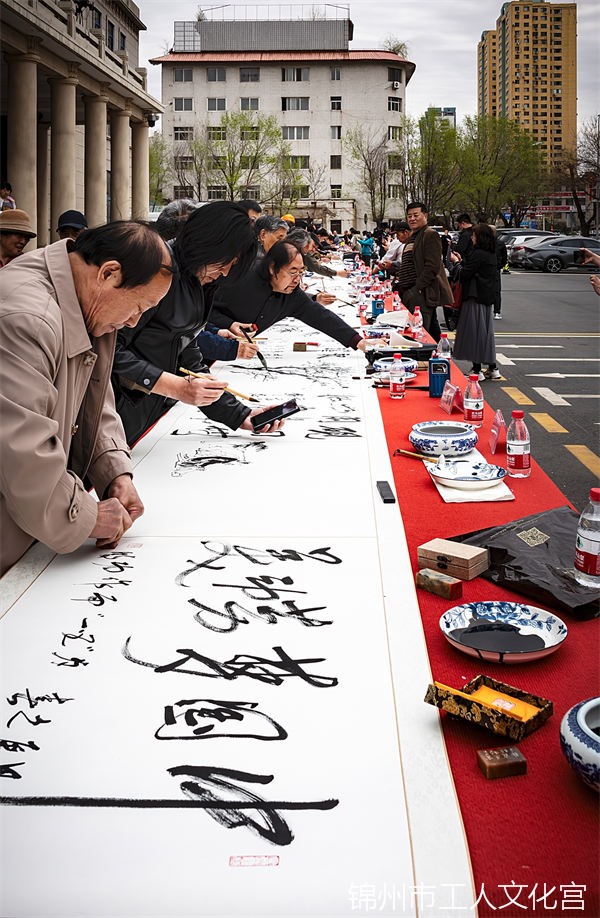 勞動成就夢想,書畫譜寫華章。4月19日上午,由錦州市總工會主辦,錦州市職工服務中心(錦州市工人文化宮)承辦,錦州市職工書畫苑協(xié)辦的“中國夢·勞動美”錦州市慶祝五一國際勞動節(jié)職工書畫長卷筆會活動在市工人文化宮廣場舉行。我市51位職工書畫名家,以精湛的技藝和對藝術(shù)的熱愛,現(xiàn)場激情共繪51米藝術(shù)長卷獻禮五一國際勞動節(jié),展現(xiàn)了錦繡山河的壯美和工匠精神的偉大。