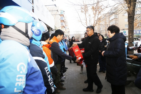 慰問組一行來到新業(yè)態(tài)企業(yè)餓了么站點(diǎn),深入了解新就業(yè)形態(tài)勞動者群體的權(quán)益保障和生活狀況,為他們送去了“暖新禮包”和慰問金,表達(dá)了對這一群體辛勤付出的認(rèn)可和尊重。同時(shí)提醒大家在工作的同時(shí)也要做好御寒保暖,遵守交通規(guī)則,注意勞逸結(jié)合、保護(hù)自身健康。