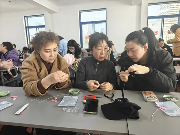 活動現(xiàn)場,老師通過PPT給大家講解了珠串設(shè)計(jì)、材料選擇、色彩搭配、制作工藝等實(shí)際操作步驟,并結(jié)合自身經(jīng)驗(yàn)詳細(xì)分享了從網(wǎng)店注冊到運(yùn)營與推廣等一系列過程。隨后,老師現(xiàn)場示范如何使用傳統(tǒng)手工藝制作簡單的手機(jī)鏈,包括穿線、打結(jié)、連接等基本步驟。引導(dǎo)大家根據(jù)自己的喜好進(jìn)行色彩搭配,并參考一些經(jīng)典的配色方案,讓作品更具美感。女職工們圍坐在一起,認(rèn)真聆聽,還不時(shí)拿起手機(jī)拍照,現(xiàn)場學(xué)習(xí)氛圍濃厚。實(shí)踐環(huán)節(jié),女職工們充分釋放創(chuàng)意靈感,一邊串珠,一邊互相“取經(jīng)”,在大家的巧手慧心下,一顆顆珠子變成了一串串別具特色的手工飾品?,F(xiàn)場處處洋溢著溫馨與歡樂。大家紛紛表示,近期市總工會開展的一系列女職工培訓(xùn)活動,不但豐富了她們的業(yè)余文化生活,拓寬了職業(yè)發(fā)展路徑,更讓她們深切感受到了市總工會對女職工的真切關(guān)懷。